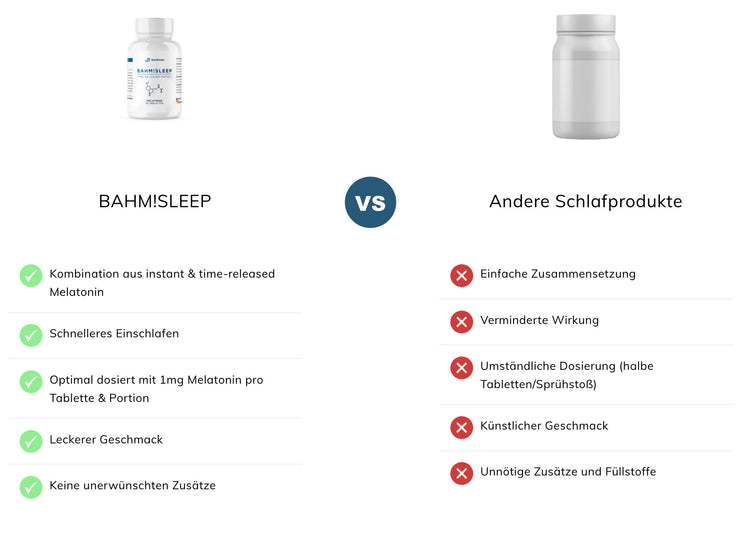 BAHM! SLEEP - Die exklusive zeitverzögerte BAHM!SLEEP MELATONIN MATRIX für einen besseren Schlaf.