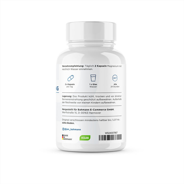- Hochdosiert: 200 mg Magnesium pro Tagesportion (2 Kapseln).