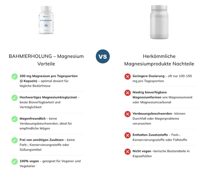 - Unser hochwertiges Magnesiumbisglycinat bietet eine überlegene Bioverfügbarkeit im Vergleich zu herkömmlichen Magnesiumformen.