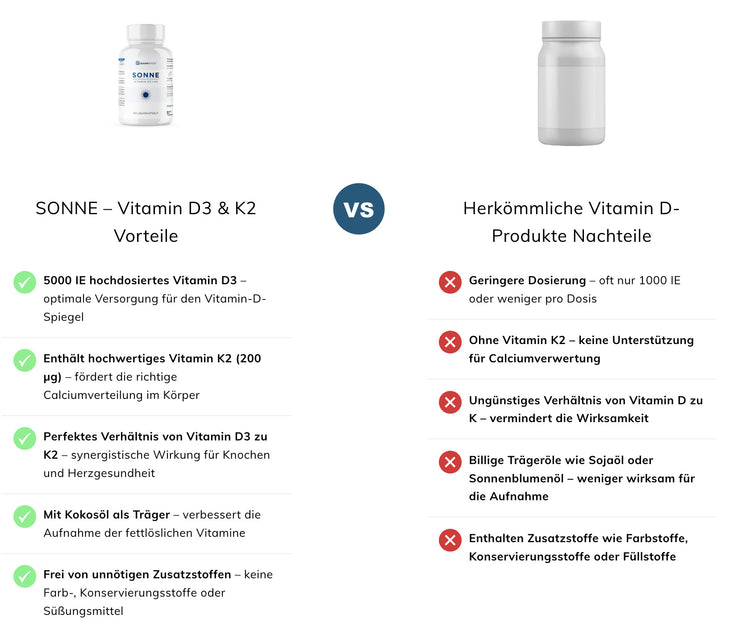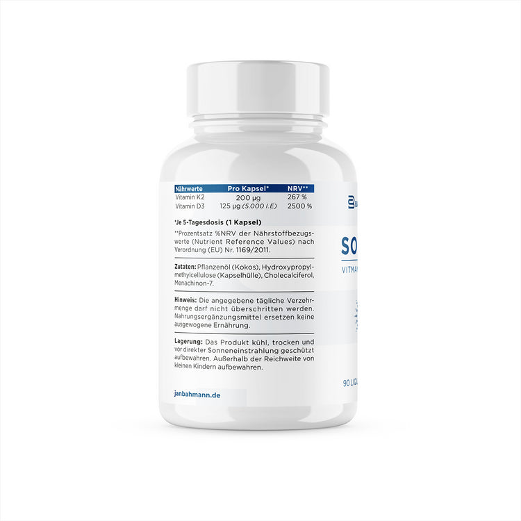 SONNE - Vitamin D3 & K2 Kapseln - 90 Liquidkapseln